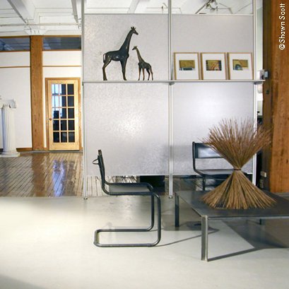 Used for creating shelving units with or without a supporting wall. Adjustable non-skid/non-marking mounts allow poles to be installed under compression between floor and ceiling. When used as a room divider side channels can accept 1/4″ decorative panels.