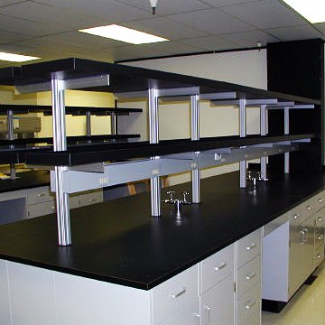 D. Integrated into counter or laboratory casework. Shown with Rakks T-Style Brackets.
